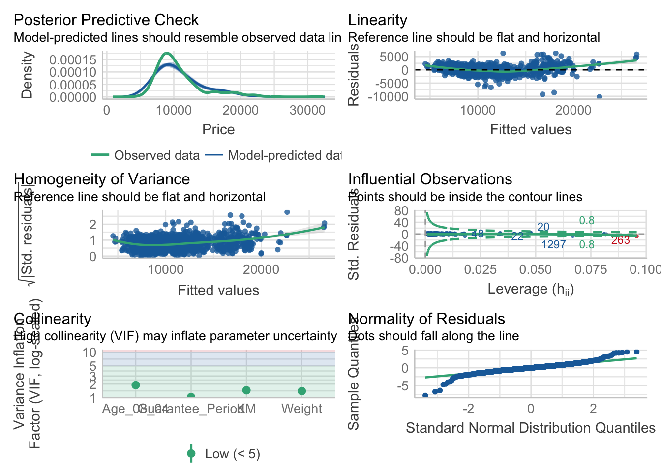model <- lm(Price ~ Age_08_04 + Mfg_Year + KM + Weight + Guarantee_Period, data = car_resale)