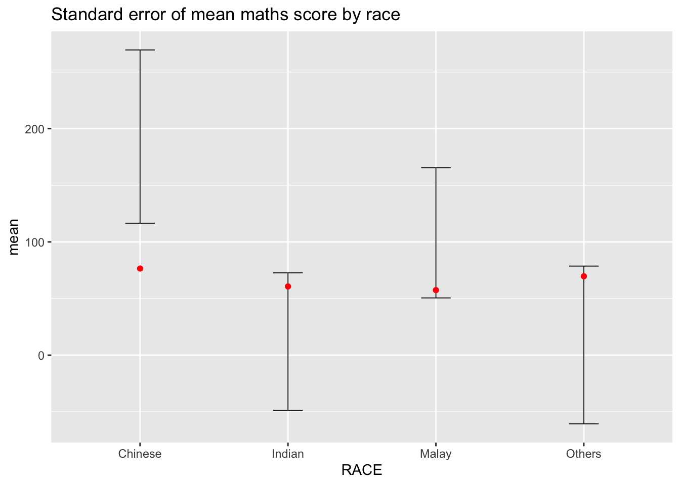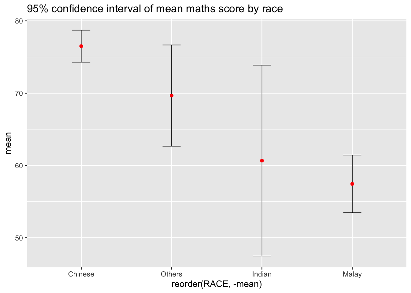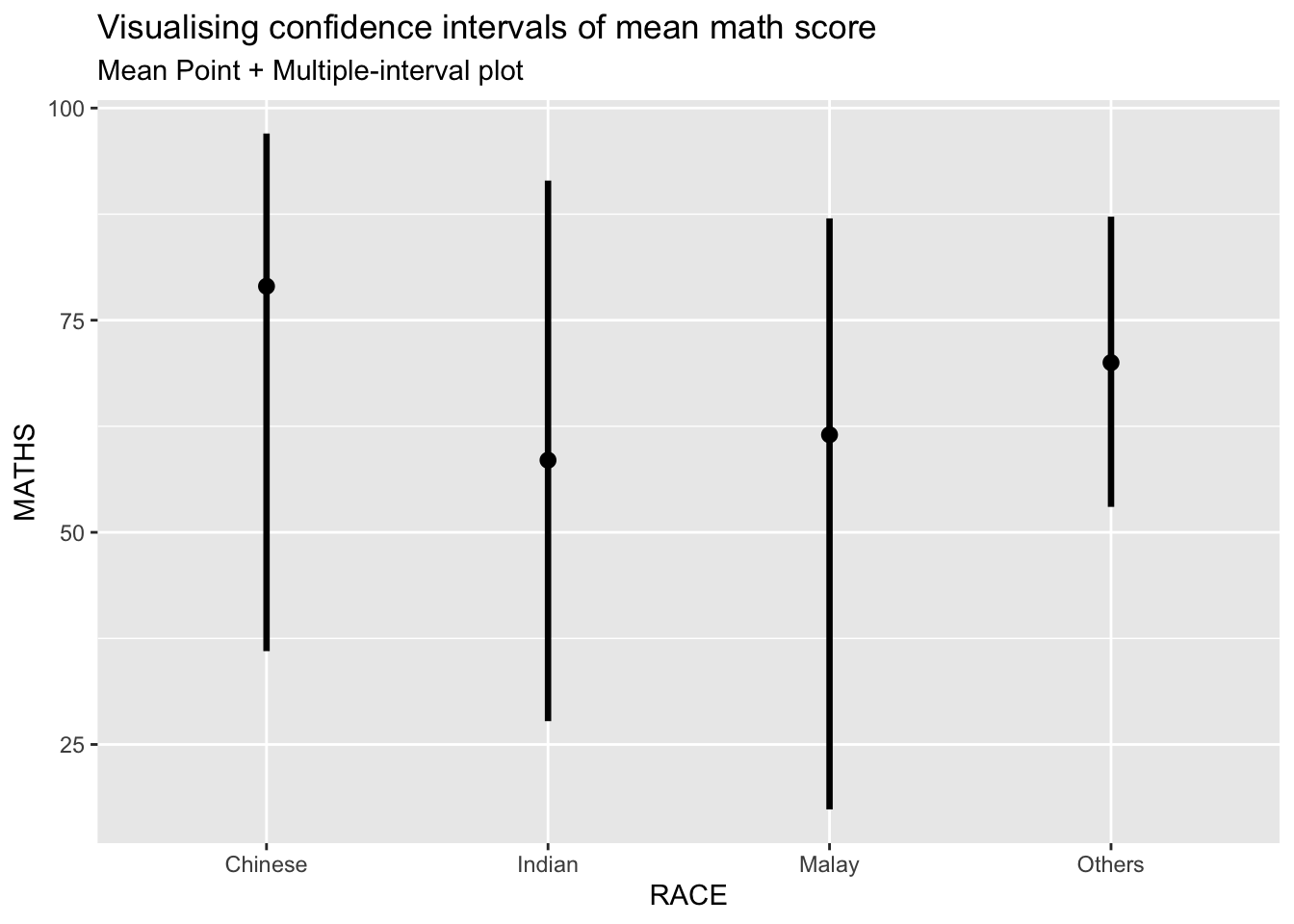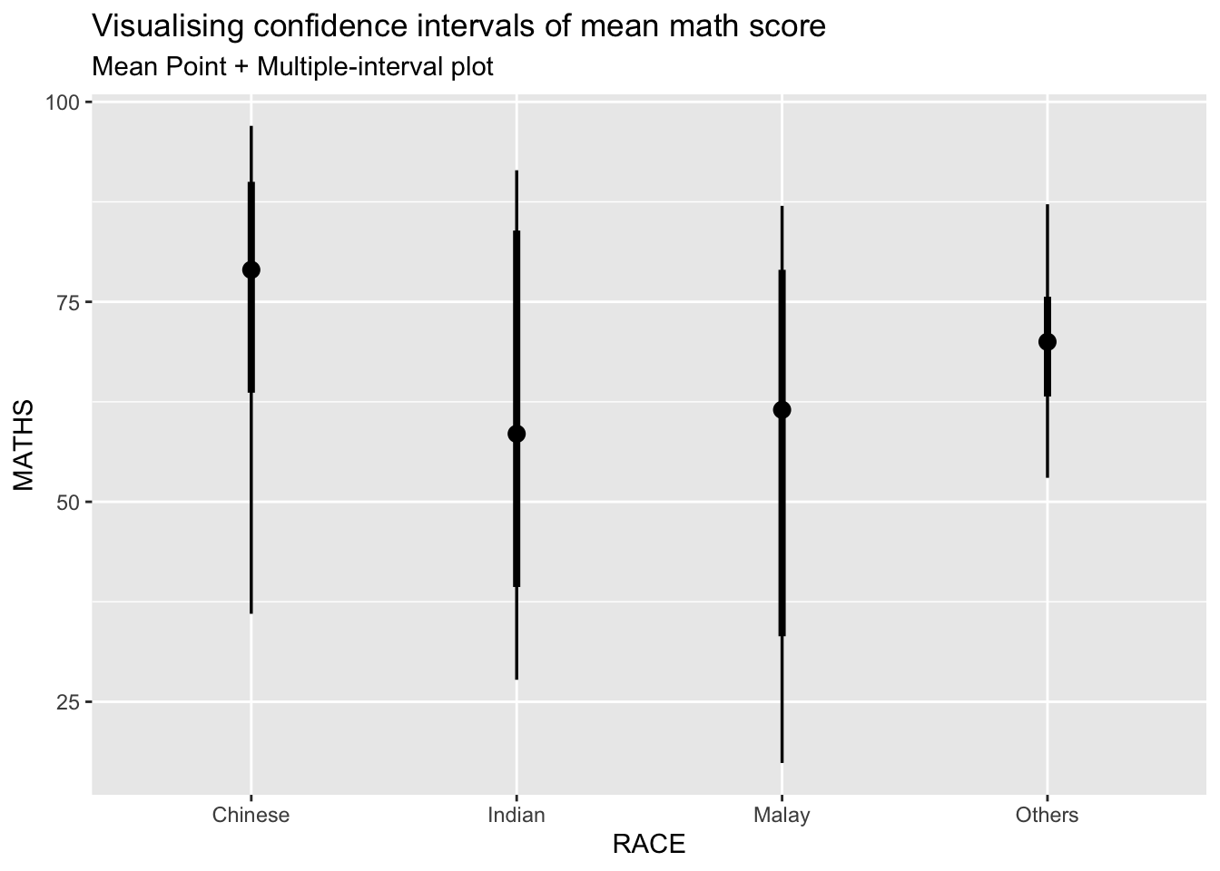 library(ungeviz)ggplot(data = exam, aes(x = factor(RACE), y = MATHS)) +