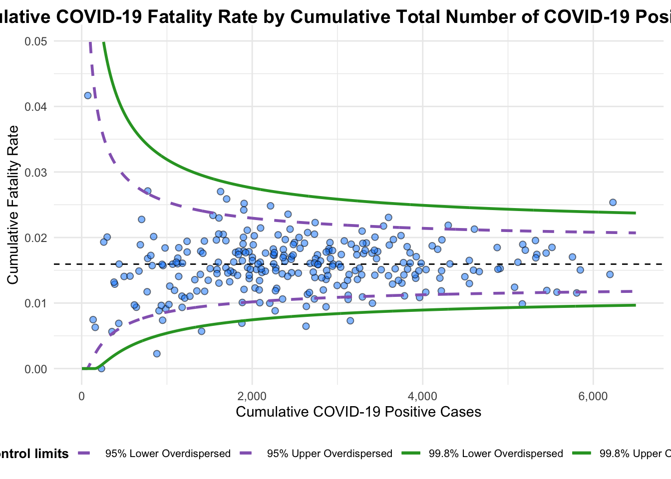 title = "Cumulative COVID-19 Fatality Rate by Cumulative Total Number of COVID-19 Positive Cases", #<<