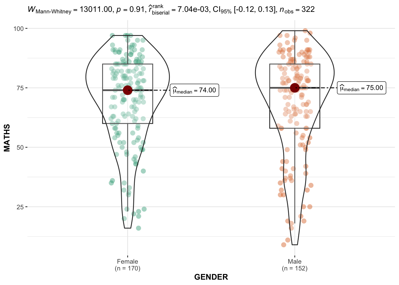 ggbetweenstats with GENDER AND MATHS and np