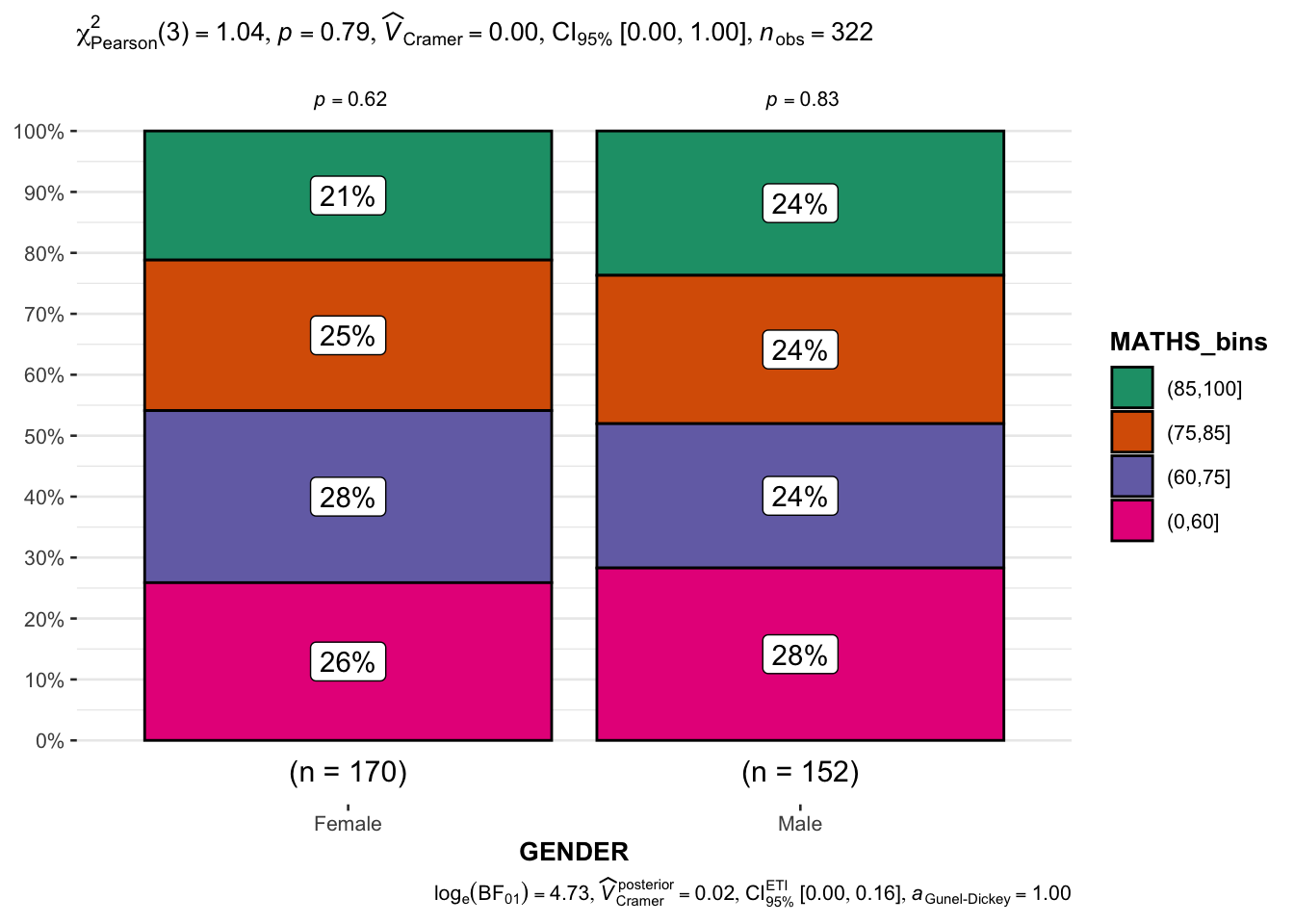 mutate(MATHS_bins = cut(MATHS, breaks = c(0, 60, 75, 85, 100)))ggbarstats