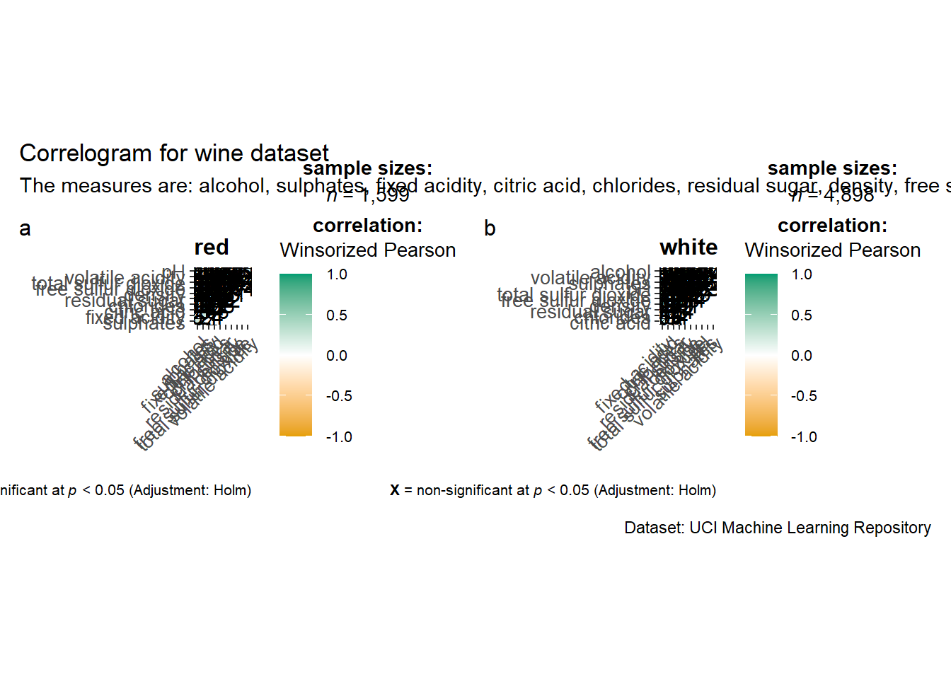 title = "Correlogram for wine dataset",